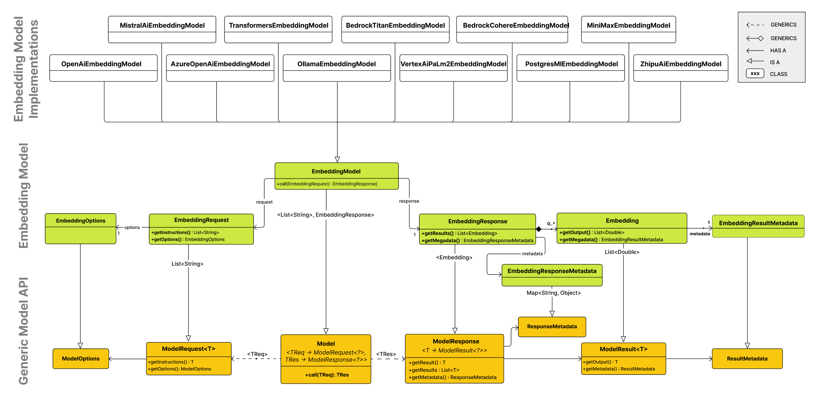 ๋ํ EmbeddingResponse ํด๋์ค๋ AI ๋ชจ๋ธ์ ์๋ต์ ๋ํ ๋ฉํ๋ฐ์ดํฐ์ธ EmbeddingResponseMetadata ๋ ํจ๊ป ํฌํจํฉ๋๋ค.