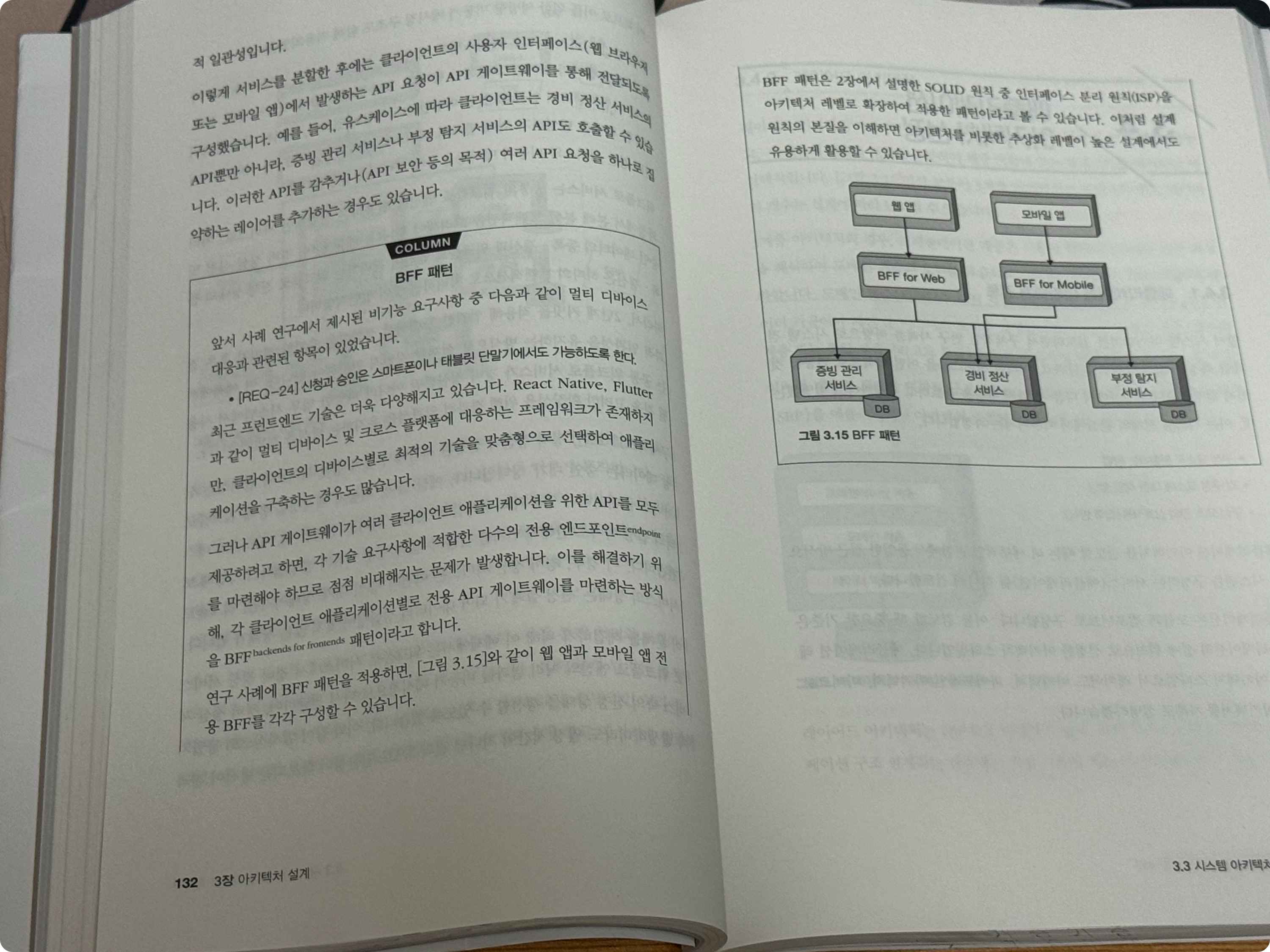 ์ฑ ์์๋ “COLUMN”์ ํตํด ๋ณธ๋ฌธ์์ ๋ค๋ฃจ์ง ๋ชปํ ๋ค์ํ ํ์ ์ ๊ณตํฉ๋๋ค. ์๋ฅผ ๋ค์ด BFF ํจํด๊ณผ ๊ฐ์ ํน์ ์ํคํ ์ฒ ํจํด์ ๋ํ ์ค๋ช ๋ถํฐ, ์ ์์ ์ค์ ๊ฒฝํ์์ ๋น๋กฏ๋ ์ธ์ฌ์ดํธ๊น์ง ๋ด๊ฒจ ์์ต๋๋ค. ๋ถ๋๋ ํ๋ ์ชฝ ์ ๋๋ก ๋ถ๋ด ์์ด ์ฝ์ ์ ์์ด, ๋ณธ๋ฌธ ํ์ต์ ๊ณ๋ค์ด๊ธฐ ์ข์ ์ค์ง์ ์ธ ๋ถ๊ฐ ์ง์๋ค์ด ๋ง์ต๋๋ค. ์ด๋ฌํ ๊ตฌ์ฑ ๋๋ถ์ ๋ ์๋ ๋จ์ํ ์ด๋ก ์ ์ต๋ํ๋ ๋ฐ ๊ทธ์น์ง ์๊ณ , ์ค์ ๊ฐ๋ฐ ํ์ฅ์์ ํ์ฉํ ์ ์๋ ํต์ฐฐ๋ ํจ๊ป ์ป์ ์ ์์ต๋๋ค.