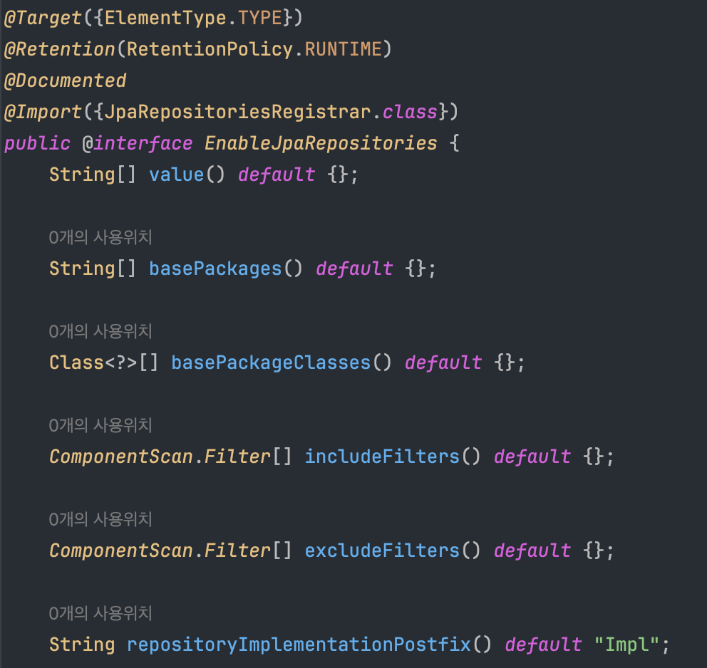 ์ฌ๊ธฐ์์ repositoryImplementationPostfix์ ๋ํด ํ์ธํด ๋ณด์๋ฉด, ์คํ๋ง ๋ฐ์ดํฐ JPA๋ ์ปค์คํ