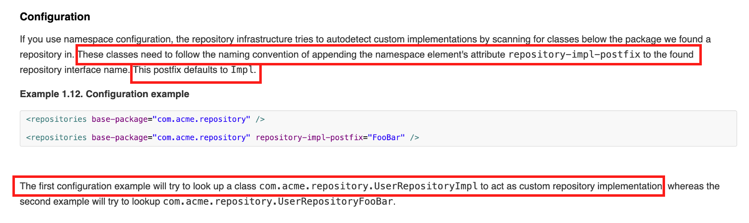 ์ฌ๊ธฐ์์ repositoryImplementationPostfix์ ๋ํด ํ์ธํด ๋ณด์๋ฉด, ์คํ๋ง ๋ฐ์ดํฐ JPA๋ ์ปค์คํ