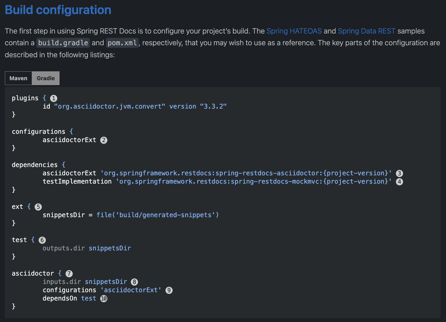 testImplementation 'org.springframework.restdocs:spring-restdocs-mockmvc'