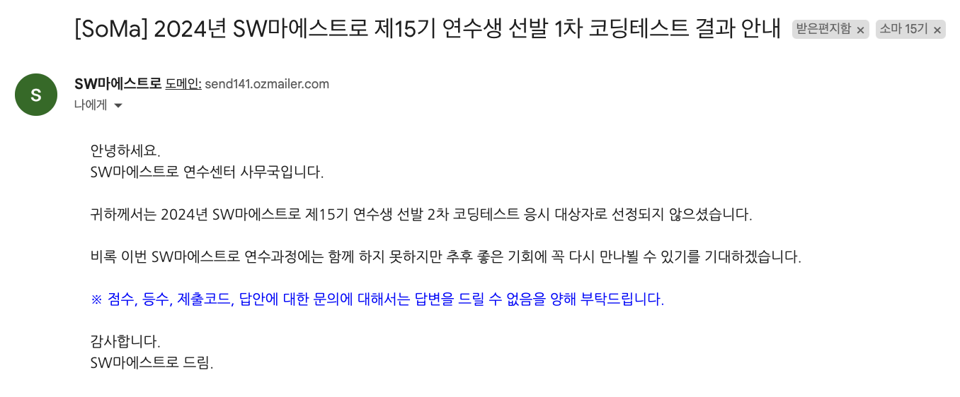 4. SW ๋ง์์คํธ๋ก 15๊ธฐ ์ง์ - 1์ฐจ ์ฝ๋ฉํ ์คํธ ํ๋ฝ