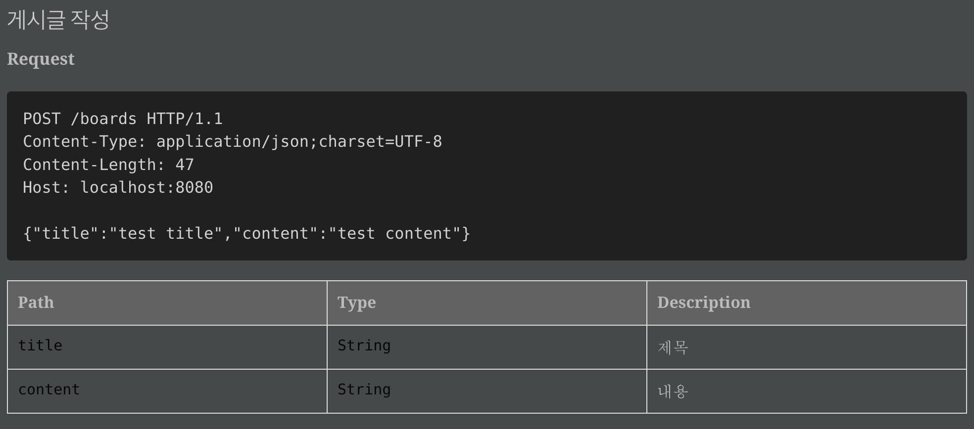 BoardWriteRequest request = new BoardWriteRequest("test title", "test content");