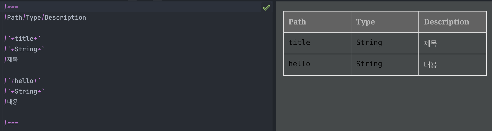 ν΄λΉ ν μ€νΈ μ½λλ₯Ό μ€ννλ©΄ μλ‘μ΄ μ€λν«μΈ request-fields.adocμ΄ μμ±λ©λλ€.
