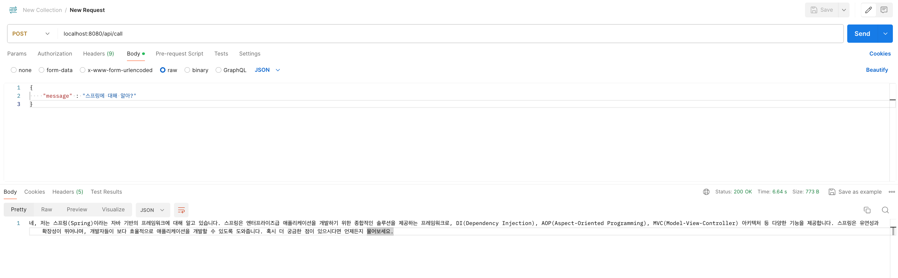 ์ด๋ก์จ Spring AI๋ฅผ ์ด์ฉํ์ฌ GPT์ ๋ํํ ๋์ ์์ฒญ๊ณผ ์๋ต์ ๋ํ ํ๋ฆ์ ์๊ฒ ๋์์ต๋๋ค.