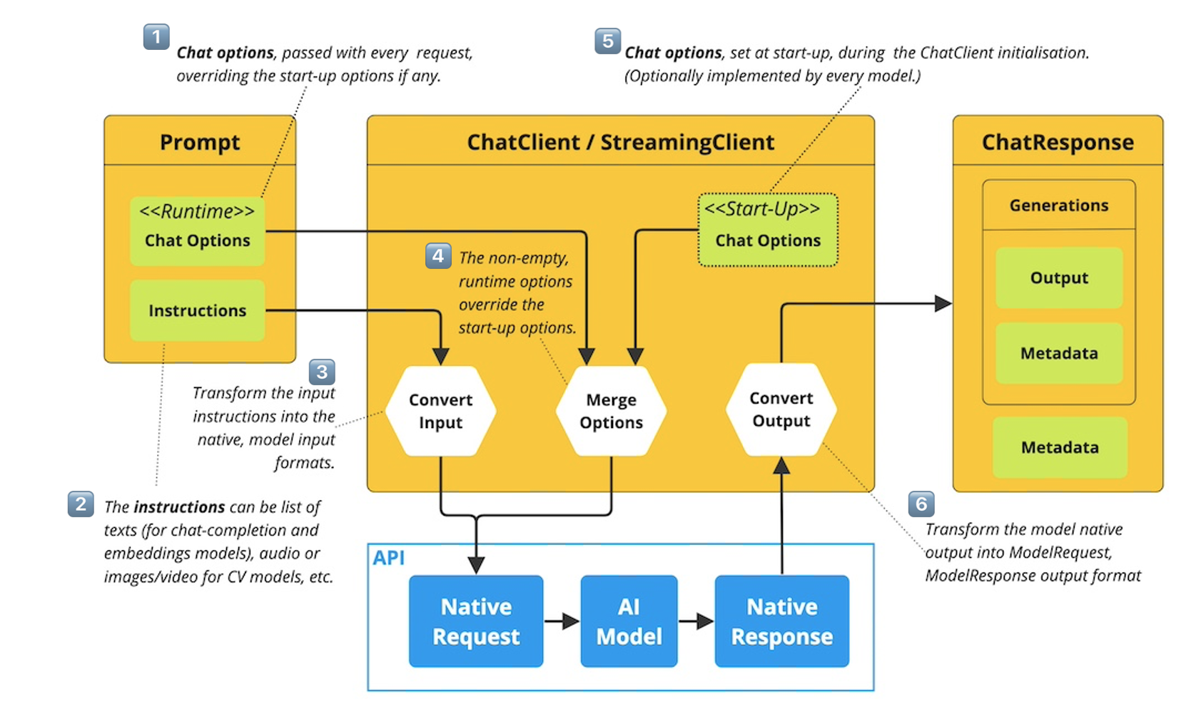 - 3๏ธโฃ: ChatClient์์๋ ์ ๋ ฅ ๋ช ๋ น๋ค์ ๋ชจ๋ธ ์ ๋ ฅ ํ์์ ๋ง๊ฒ ๋ณํํ๋ ๊ณผ์ ์ ๊ฑฐ์นฉ๋๋ค.