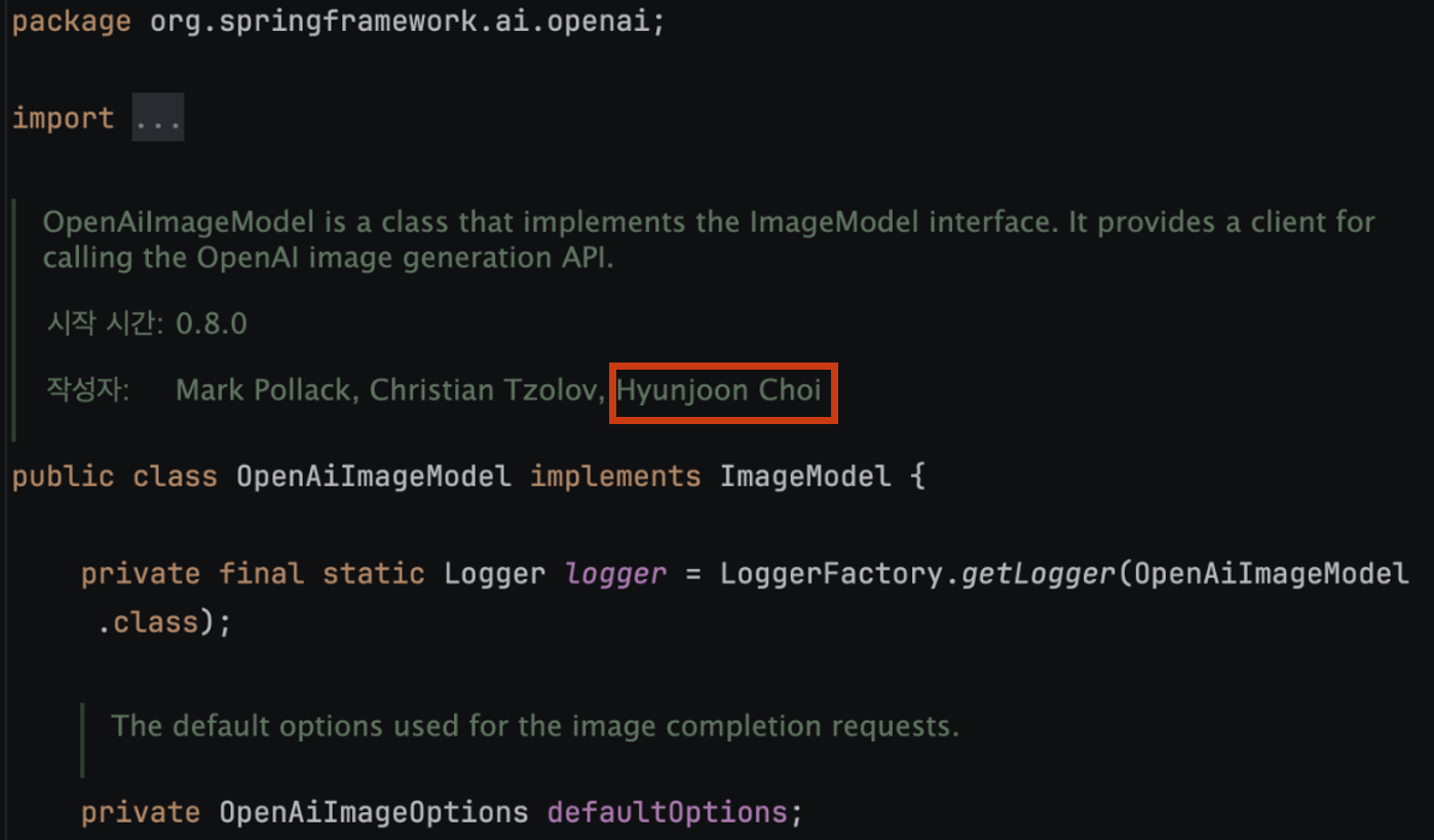 ๊ทธ๋ฆฌ๊ณ ์ผ๋ง ๋ค, ์ฑ๊ณต์ ์ผ๋ก ์ PR์ด ๋ฐ์๋์๊ณ ๊ธ์ ์ฐ๋ ํ์ฌ (05.31)์๋ ์คํ๋ง๋ถํธ ํ๋ก์ ํธ ์์ ์ OpenAI ์์กด์ฑ์ ๋ฑ๋กํ๋ฉด ํด๋น ํ์ผ์์ ์ ์ด๋ ฅ์ ํ์ธํ์ค ์ ์๊ฒ ๋์์ต๋๋ค.