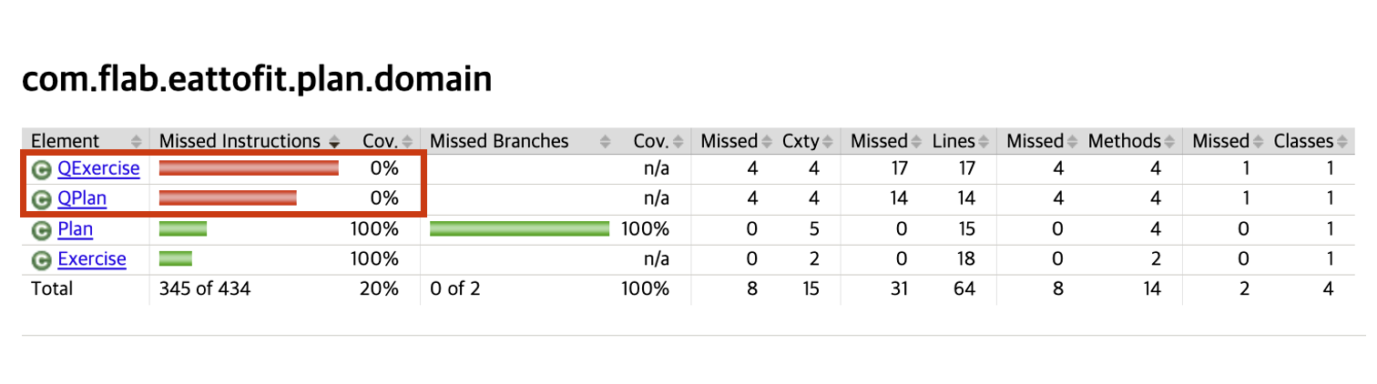 Qํด๋์ค์ ๋ํ ํ์ผ๋ค๋ Jacoco๊ฐ ์์งํ๋ค ๋ณด๋, ์ ํํ ํ ์คํธ ์ปค๋ฒ๋ฆฌ์ง๊ฐ ์ธก์ ์ด ์ ๋ ๊ฒ์ด์์ต๋๋ค.