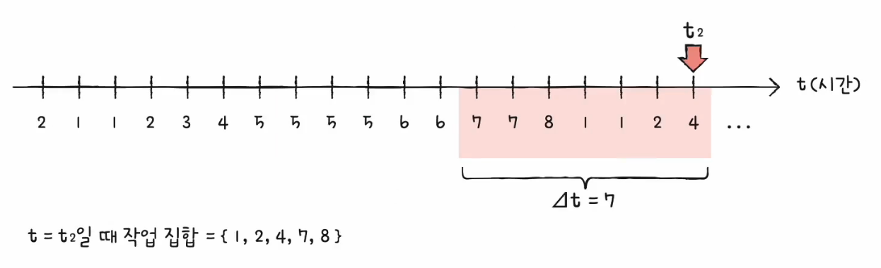 작업 집합 모델을 구하려면 프로세스가 참조한 페이지와 시간 간격이 필요합니다.