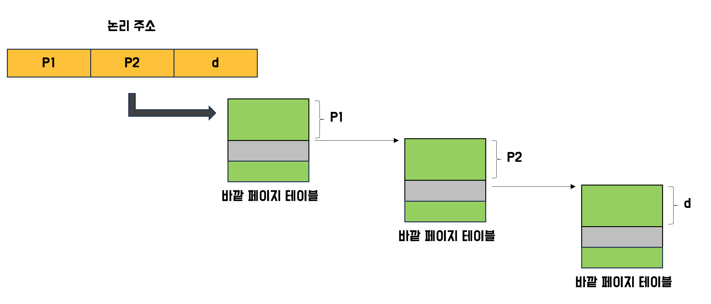 각 페이지 테이블의 한 행을 엔트리 (entry)라고 합니다.