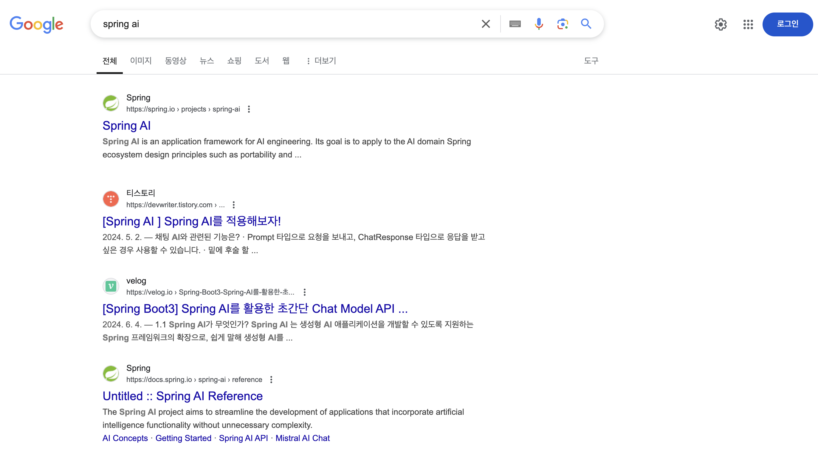 ๊ทธ ๊ฒฐ๊ณผ 24๋ 12์ ํ์ฌ๋ Spring AI๋ฅผ ๊ตฌ๊ธ์์ ๊ฒ์ํ๋ฉด Spring์ ๊ณต์ ๋ฌธ์ ์ดํ์ ์ ๊ธ์ด ๋ ๋ฒ์งธ๋ก ๋์ค๋ ๊ฒฐ๊ณผ๋ฅผ ์ป๊ฒ ๋์์ผ๋ฉฐ, ์ด๋๋ถํฐ ๋ง์ ์ฌ๋๋ค์๊ฒ ๋ ์์ ์ด ๊ฐ๋ฐ์๋ก์ ๋์์ด ๋๊ณ ์๊ตฌ๋๋ฅผ ์ฒด๊ฐํ ์ ์์์ต๋๋ค.